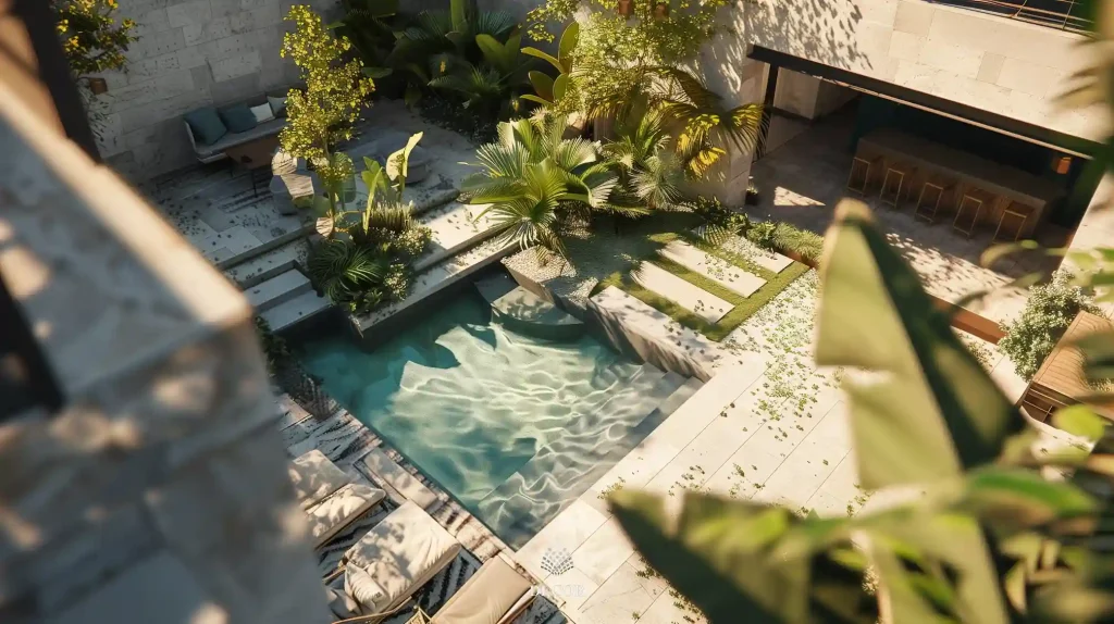 - Vật liệu thân thiện với môi trường: Gỗ tái chế, đá tự nhiên, hay nhựa composite? Hãy chọn vật liệu không chỉ bền và đẹp mắt mà còn thể hiện trách nhiệm với môi trường. Không gian thư giãn thân thiện hơn và trong lành hơn.