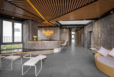 Là khách sạn 4 sao, kết hợp phong cách hiện đại giữa tông trắng – xám, xen kẽ các mảng xanh tự nhiên đem lại cảm giác thư thái, tinh tế.